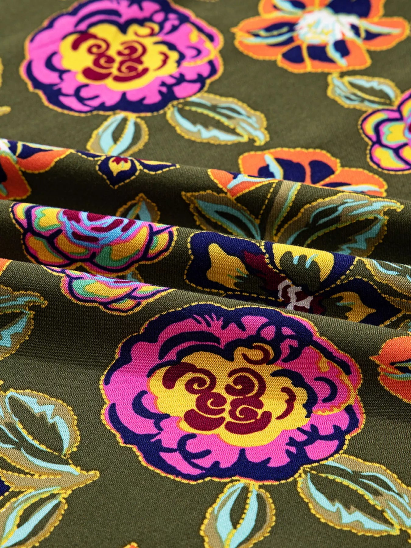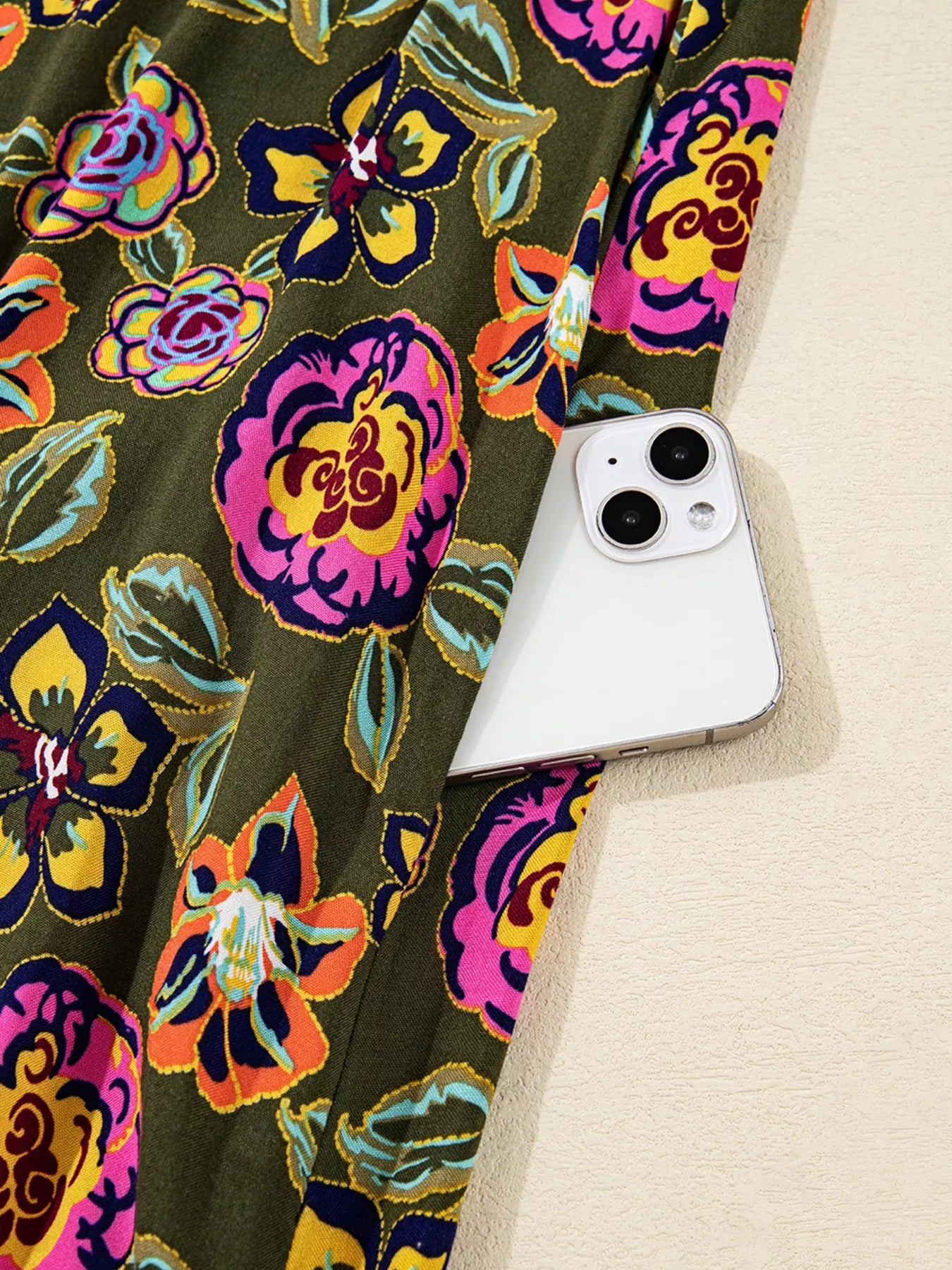 Velste Floral Print Split Neck Bubble Sleeve Shift Mini Dress
