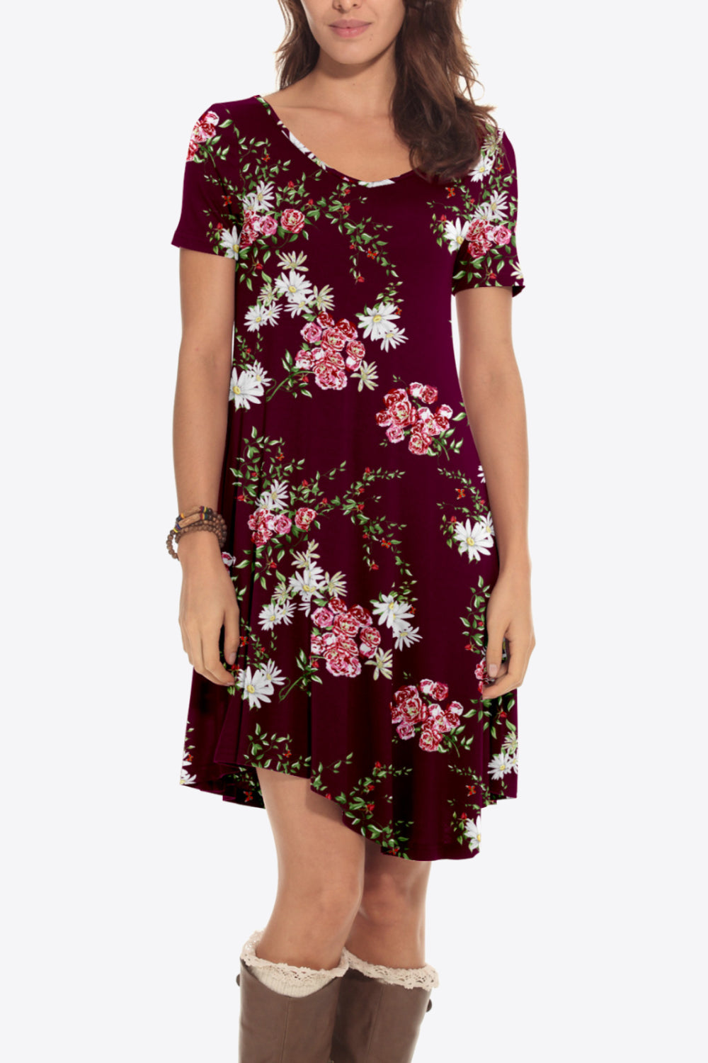Velste Floral Round Neck Short Sleeve Dress