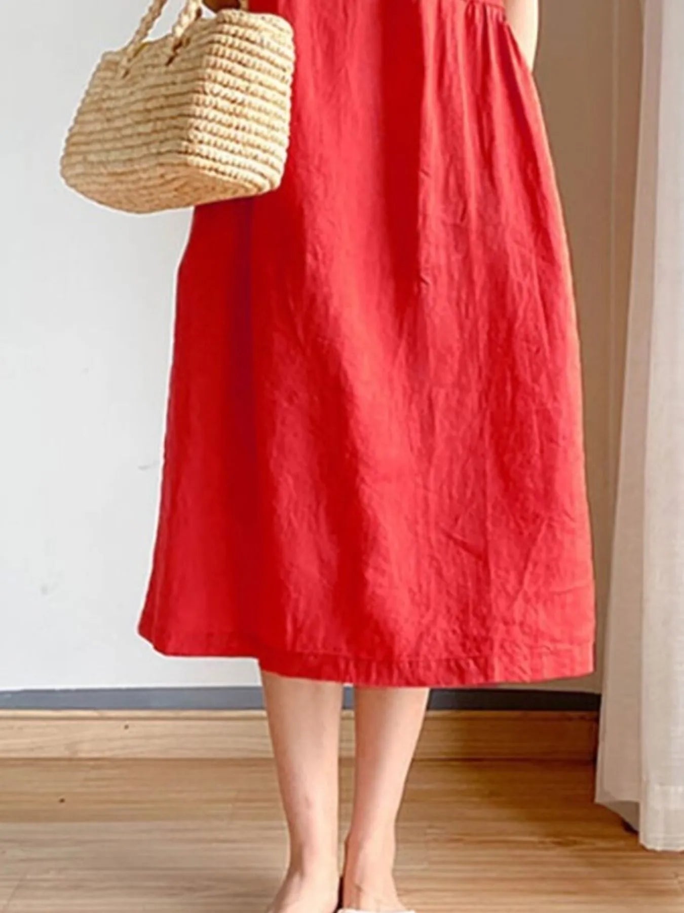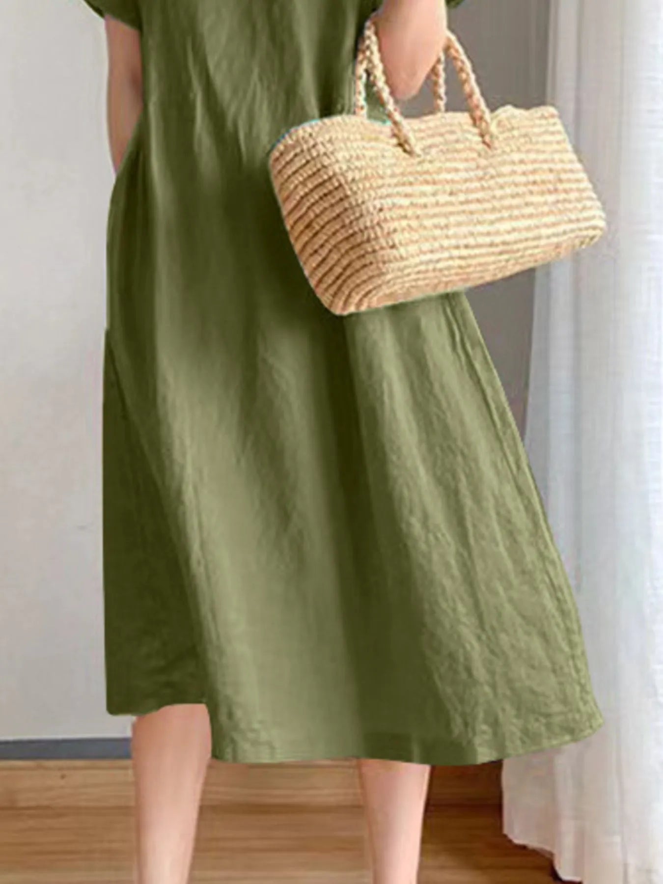 Velste Full Size Casual Round Neck Midi Dress Plus Size