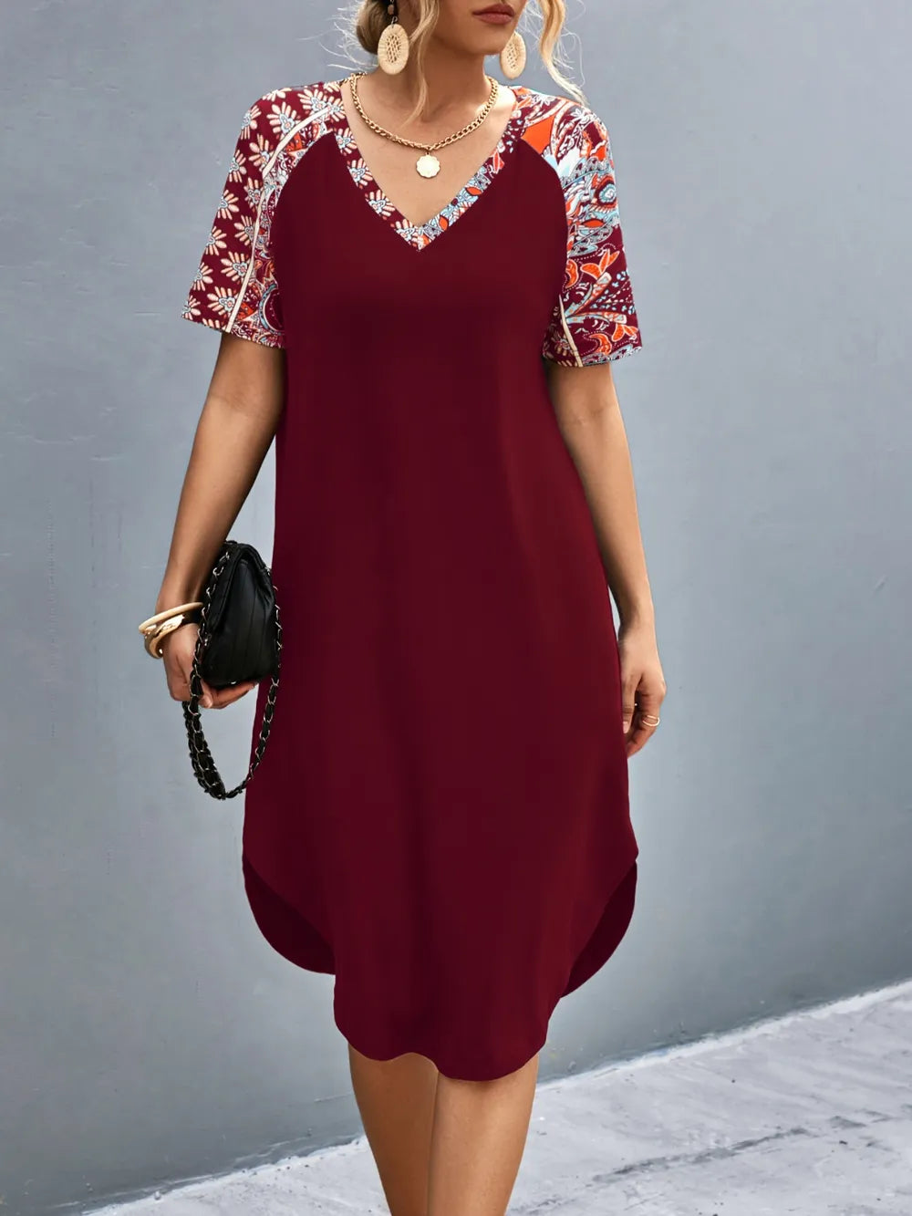 Velste Printed V-Neck Short Sleeve Dress