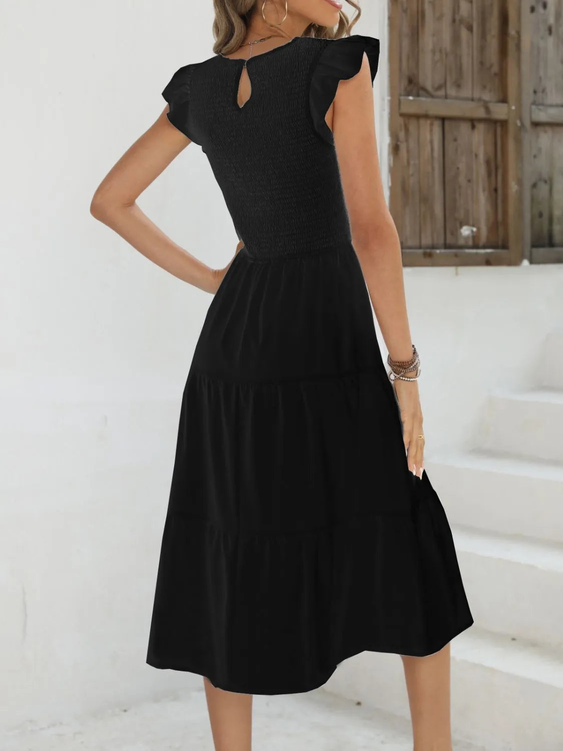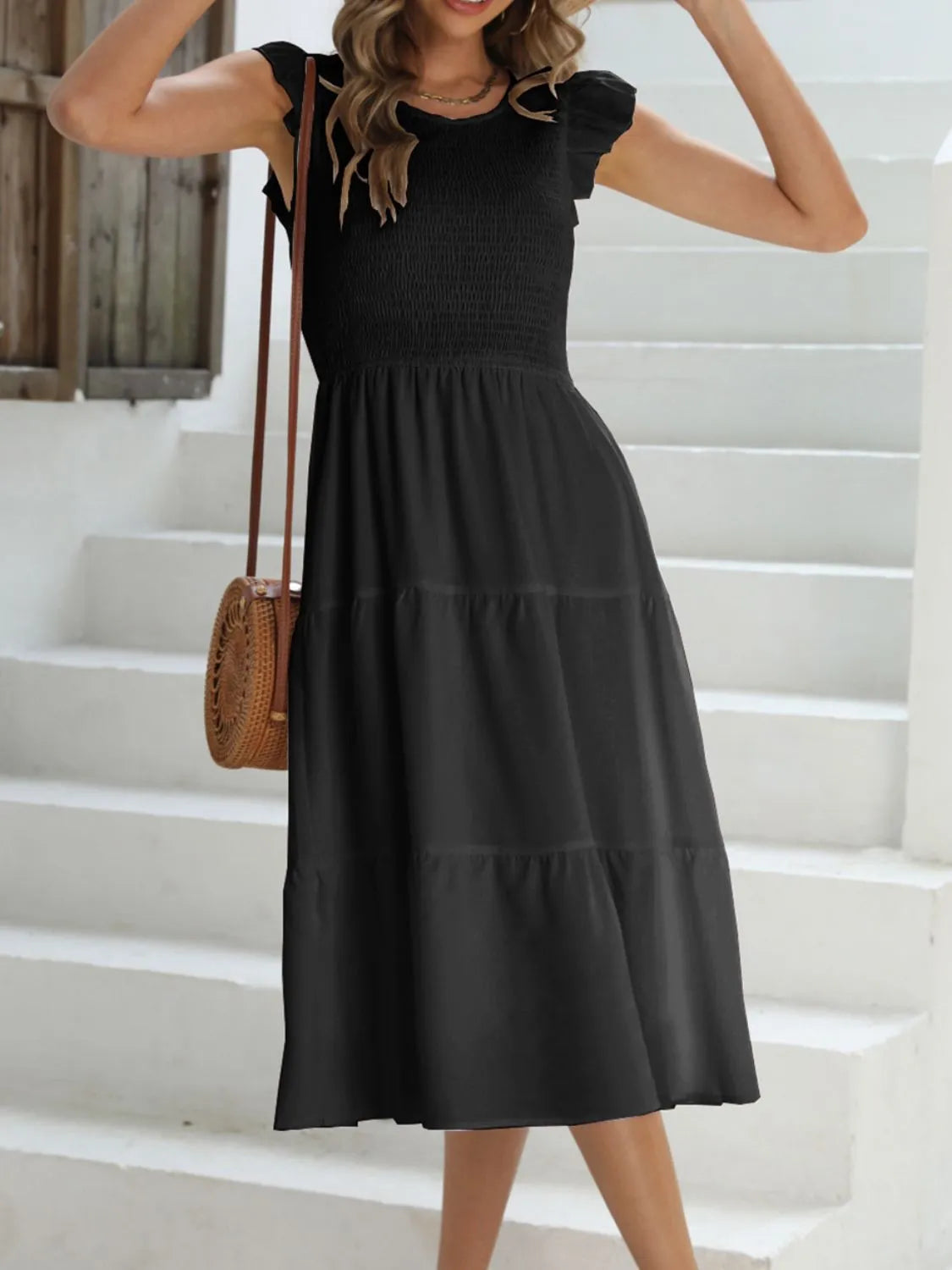Velste Ruffled Round Neck Cap Sleeve Dress