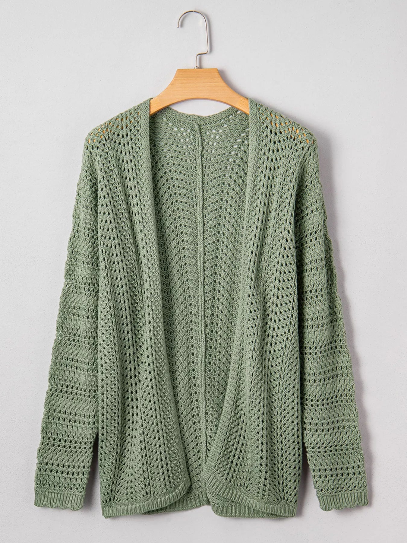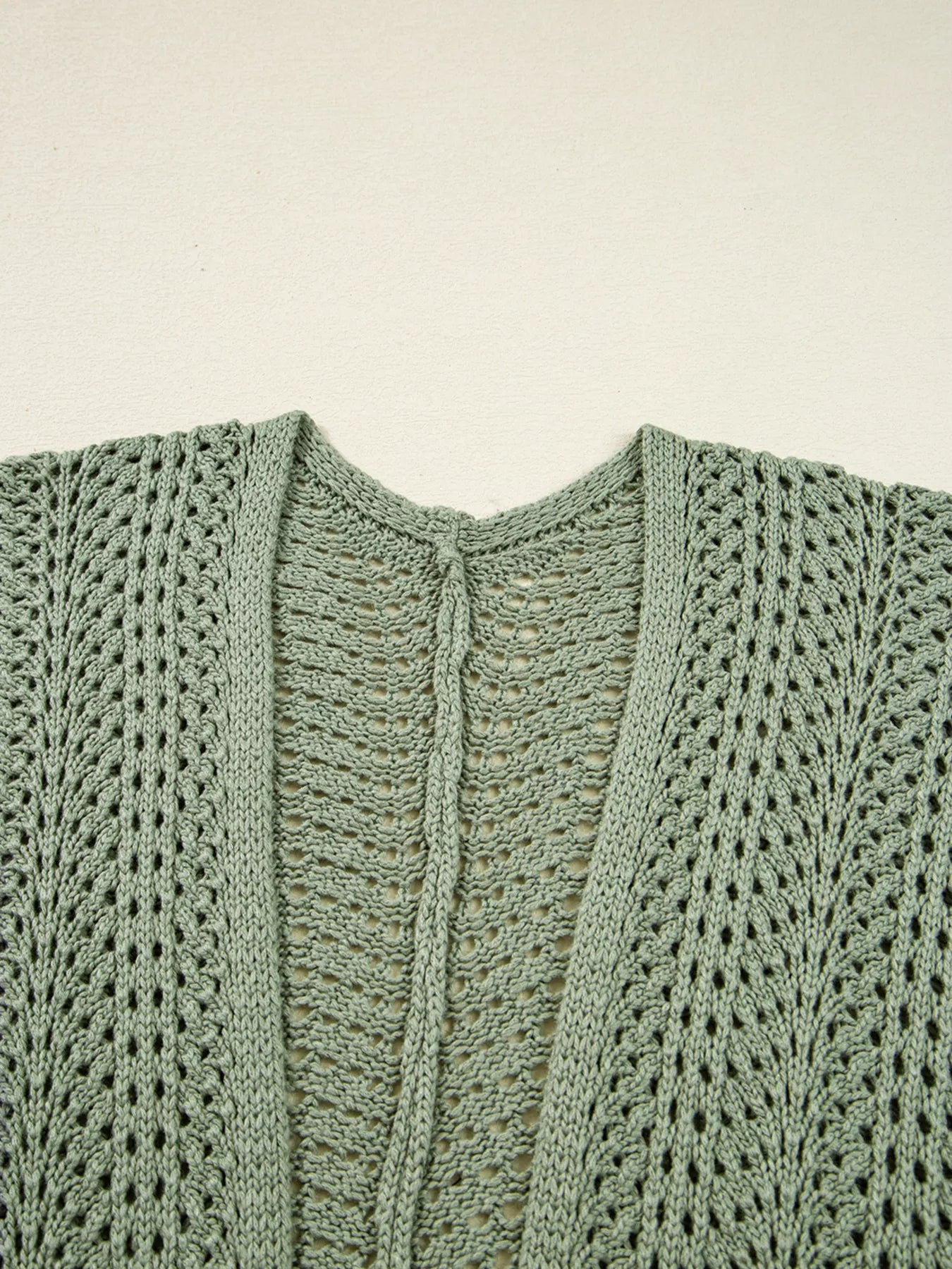 Velste Scalloped Edge Eyelet Knit Batwing Sleeve Cardigan