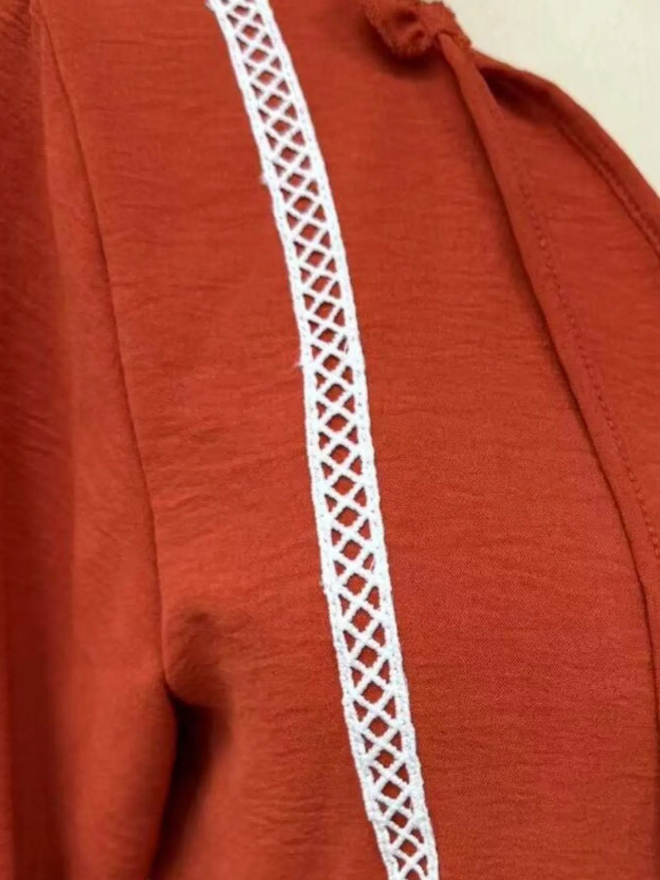 Velste Tie-Neck Long Sleeve Mini Dress with Trim Detail